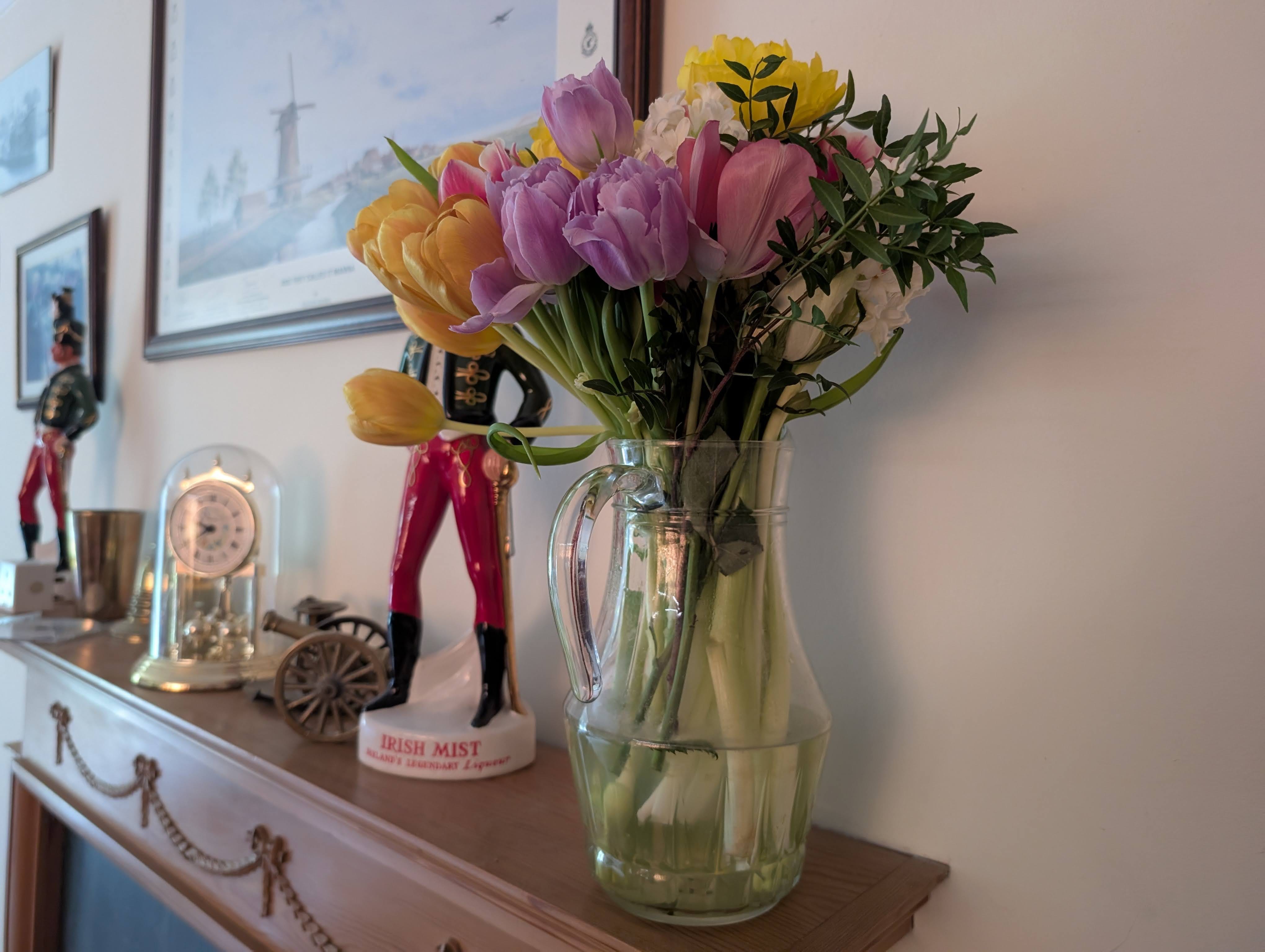 I glanced at the mantlepiece, where a vase of fresh flowers sat. I’d bought them for her on my way here, so she’d have something nice to look at from her bed. She’d been surprised, and pleased.
